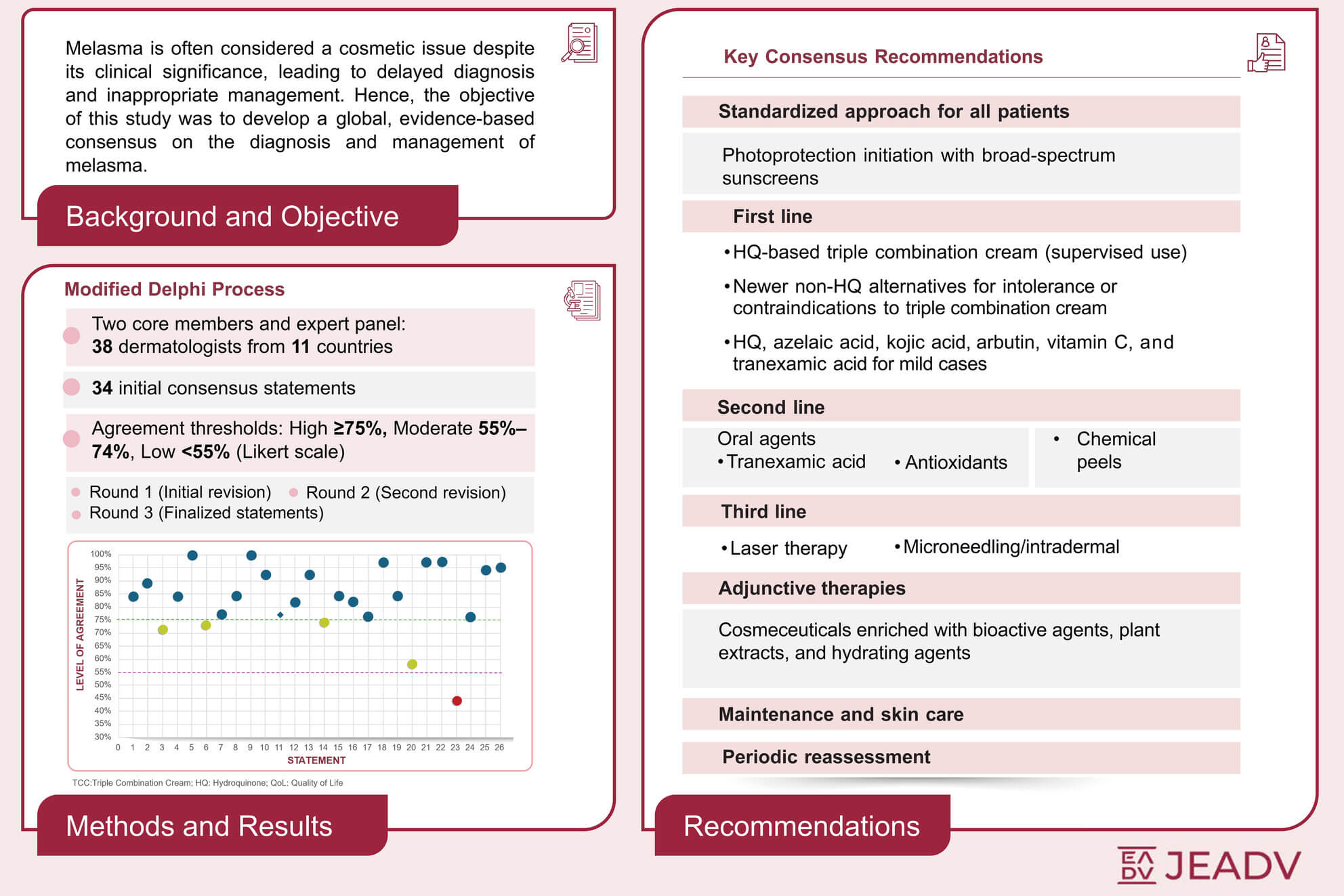 Welcome to our dedicated gallery of graphical abstracts from the Journal of the European Academy of Dermatology & Venereology. Here you will find succinct, visual summaries of published research. Whether you are a dermatologist, researcher, student, or science communicator, these graphical abstracts can help you: